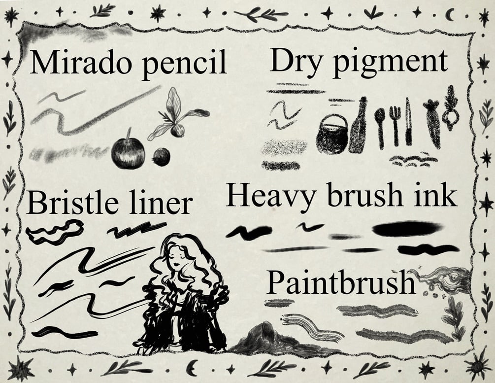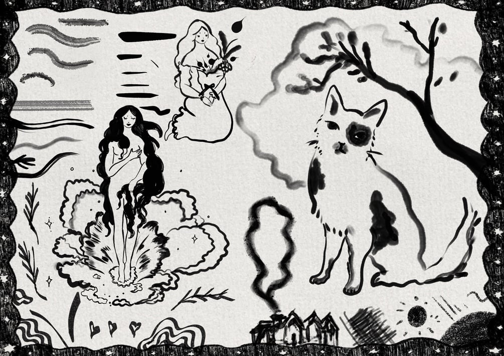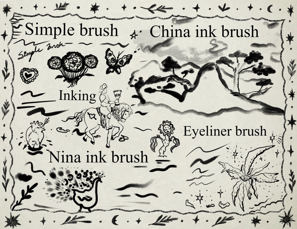 The best digital brushes meeting the analogue/traditional and whimsical vibe of ink & paper