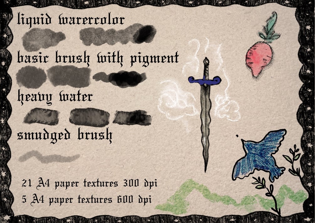 Give your digital illustrations a unique traditional and medieval feel with these whimsical and beautiful brushes.